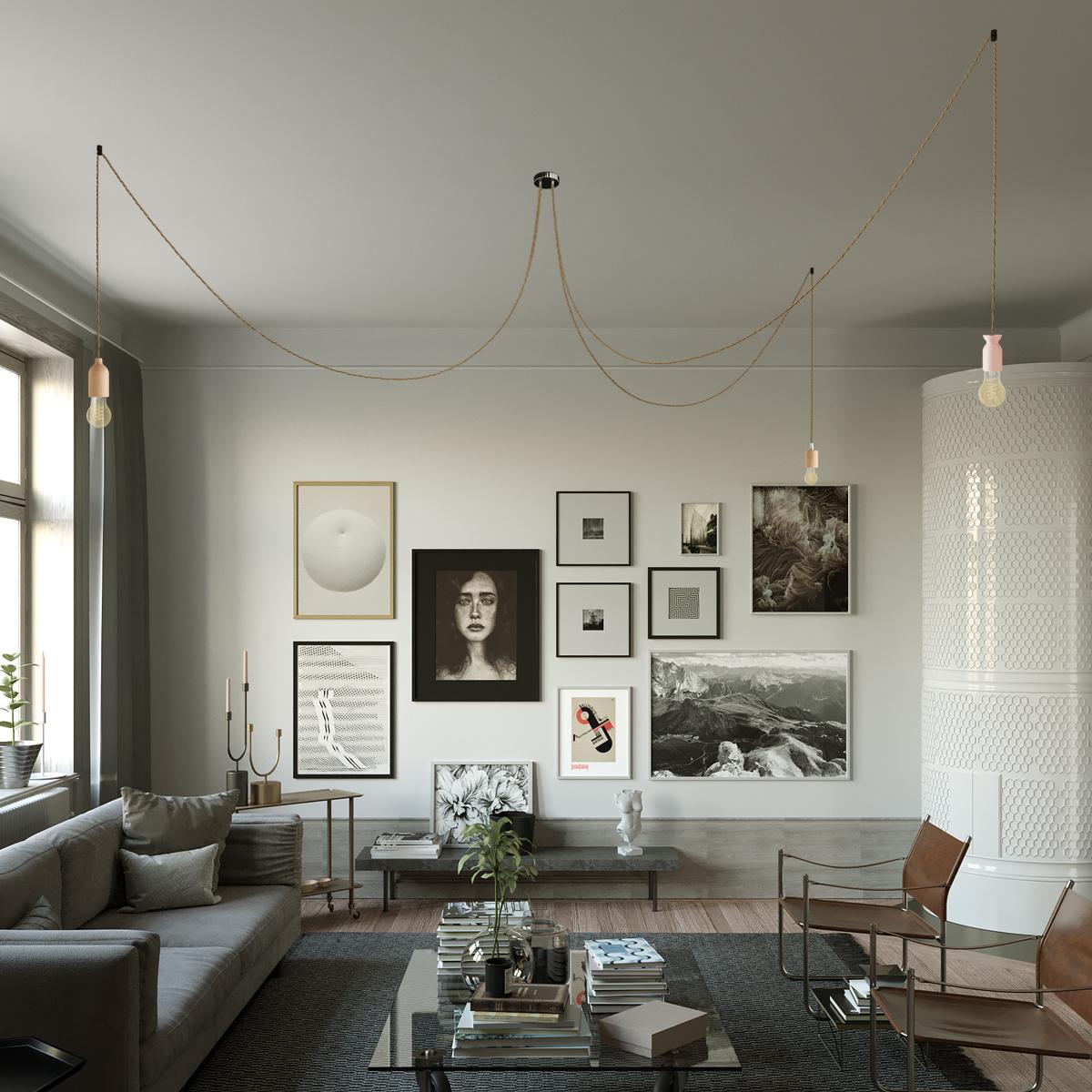 Porte-lampe : 1er bras : 1X [KBL1110] Kit douille E27 en bois avec serre-câble dissimulé - Finition: Neutral